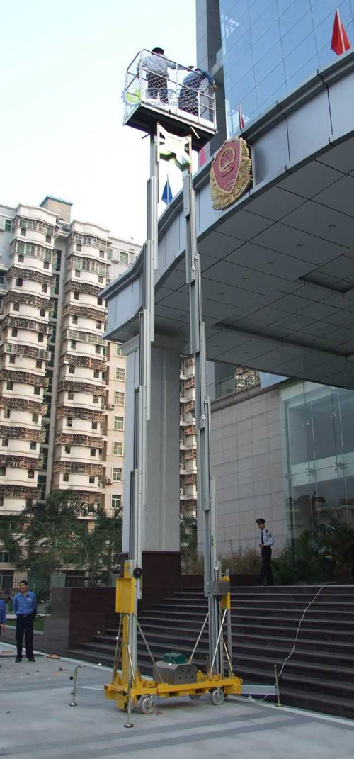 鋁合金液壓升降機主體采用鋁合金材質(zhì)構(gòu)成,具有造型美觀、體積小、重量輕、升降平衡、安全可靠等優(yōu)點,用于工廠、賓館、餐廳、車站、機場影劇院、展覽館等場所。該升降機承載能力強,適合于兩人(可攜帶一定的重量工具和材料)同時登高作業(yè);還可根據(jù)不同環(huán)境訂制成各種非標(biāo)產(chǎn)品,以滿足不同需要;是保養(yǎng)機具、油漆裝修、調(diào)換燈具、電器、清潔保養(yǎng)等用途的伴侶。